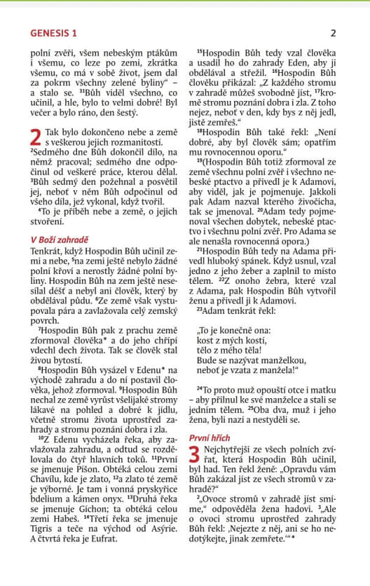 Bible v kapesním formátu. Odolná a atraktivní vazba, zakulacené rohy, sazba ve dvou sloupcích a záložka.