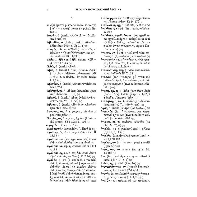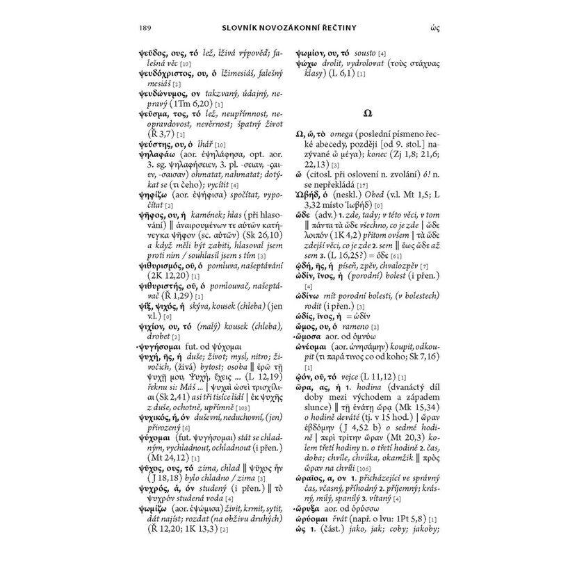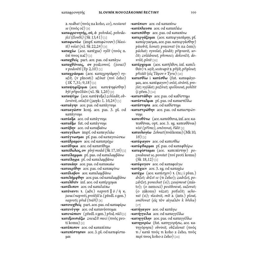 Slovník novozákonní řečtiny je slovníkem středního rozsahu, zaměřeným na jazykovou stránku slovní zásoby Nového zákona. Jeho cílem je umožnit čtení řeckého originálu Nového zákona i těm, kteří mají pouze základní znalosti gramatiky. Svou koncepcí se snaží přiblížit současným zahraničním slovníkům a doplňuje tak dosavadní nabídku, reprezentovanou zejména starším slovníkem J. B. Součka.