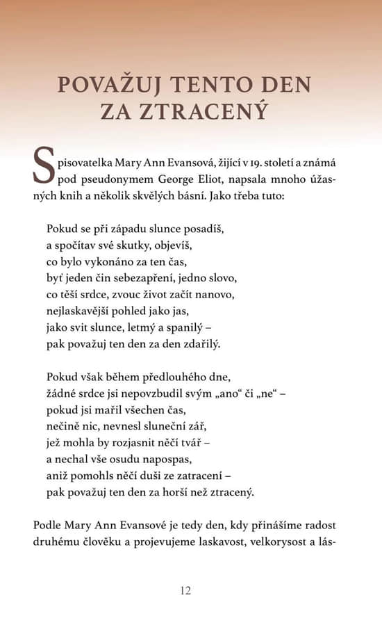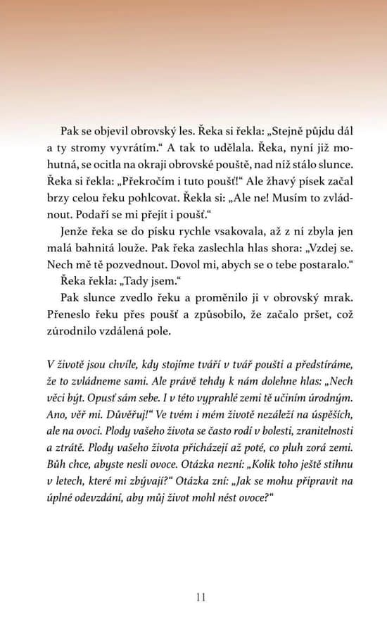 Každý člověk občas potřebuje zastavit a vydechnout, stejně jako jeho duše. Právě k tomu slouží krátké příběhy pro duši Bruna Ferrera, jejichž jubilejní 25. svazek zde předkládáme. Opět potěší svou vlídností a povzbudí svou moudrostí a vhledem od tajemství lidské duše a života.