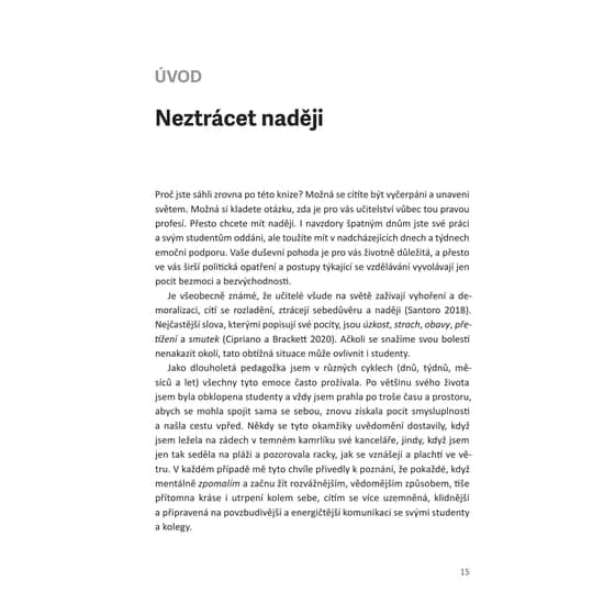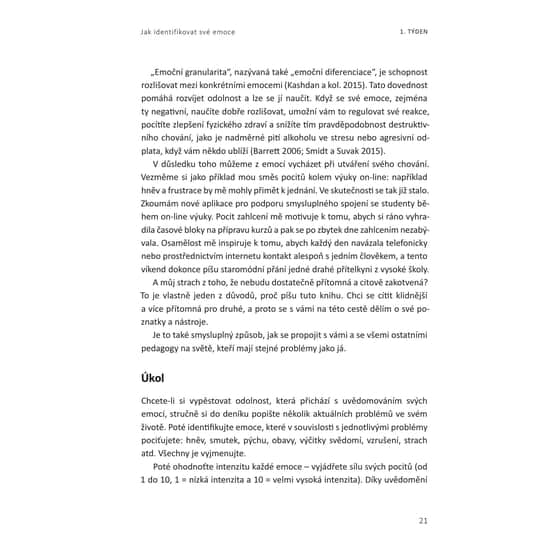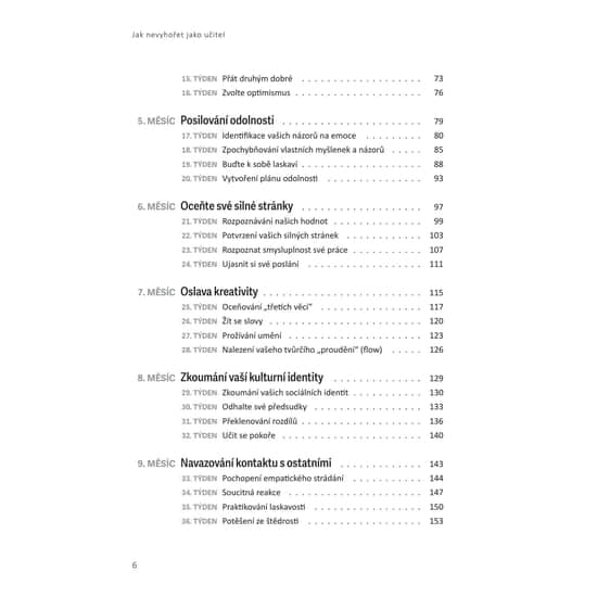 Kniha učitele provází a pomáhá mu vybudovat si psychickou odolnost, posílit emoční stálost a čelit každodenním školním výzvám. Pokud pracujete s dětmi, největší výzvy vás čekají ve třídě. Vaši žáci mají možná poruchy učení, někteří jsou hyperaktivní, jiní se nesoustředí. Můžete se setkat i s dětmi, které jsou úzkostné, mají psychické problémy či zažily traumatickou událost. Nezapomínejme také na žáky s problematickým chování. To vše na vás klade velké nároky.