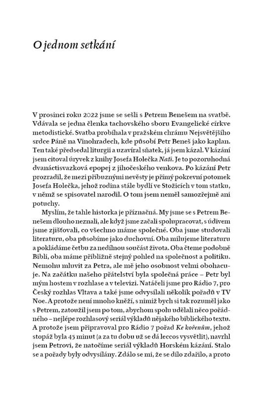 Tzv. Horské kázání (Mt 5–7) vyvolávalo v dějinách často protikladné interpretace. Od doslovného chápání, které bývalo často vyhroceno proti kompromisnímu vnímání v církvích a křesťanské praxi (tak text četl např. Tolstoj a částečně i Nietzsche), přes interpretaci textu jako učení pro výjimečné skupiny adresátů, např. mnichy a mnišky, až po eschatologický výklad jako líčení stavu, který teprve nastane. Autoři se snaží ukázat, že je to text, který se týká každodenního života a staví nás před složité, ale aktuální otázky, jako je třeba nenásilí či bezpodmínečné odpouštění. Ukazuje, že křesťanství není jen morálně náročnějším pokračováním přirozeného života, ale životem v jiném modu, v modu milosti Boží – životem, který není úkolem, ale odpovědí na Boží lásku. Text se tedy týká každého člověka a nemá vést k zármutku nad tím, jak mu nestačíme, ale být povzbuzením k životu ze zdroje Boží svobody.