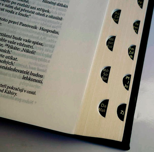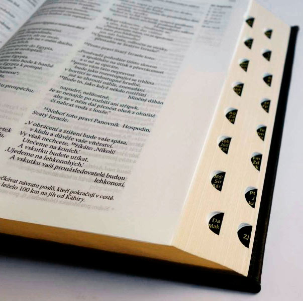 Součástí tohoto vydání jsou také orientační výřezy, které umožňují rychlé vyhledávání jednotlivých knih.