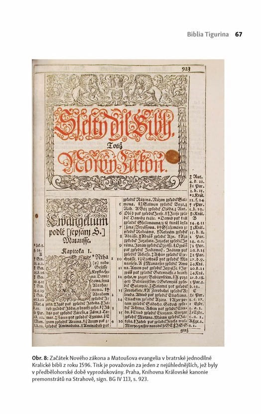 Obdivuhodná produkce překladových verzí Písma svatého v předbělohorské jednotě bratrské dosáhla v době kulminující humanistické epochy svého vrcholu. Podrobně komentovaný Nový zákon vytiskli bratří dvakrát, jednak jako poslední díl Kralické bible šestidílné v roce 1593–1594, jednak jako upravené a rozšířené vydání v roce 1601. Právě tento „v nově přehlédnutý“ Nový zákon z počátku 17. století byl zamýšlen jako náhrada znění z let 1593–1594 a v této funkci jej vskutku nezřídka nacházíme v dochovaných kompletech.