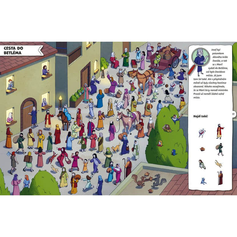 Ale pozor! Na každé dvoustraně hledejte také jednu malou ztracenou ovečku. Patří pastýři, který vás celým příběhem provází. Pomůžete mu najít jeho ztracené jehňátko v rušných uličkách Betléma, na zelených loukách i v dalekých krajích?