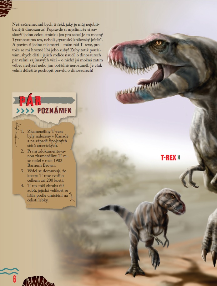 Děti na stránkách knihy zjistí různé zajímavosti z historie dinosaurů od stvoření až k nedávným objevům.