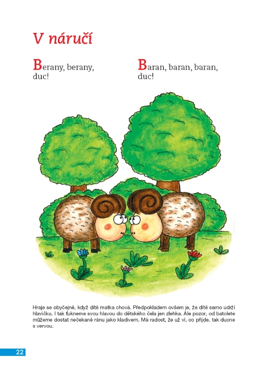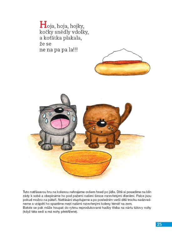 Bohatě ilustrovaný soubor říkadel a her poskytne společné potěšení rodičům i jejich nejmenším. Nabízí motivační nápady zejména pro výchovu dětí od narození do tří let a praktické podněty k esteticko-výchovným činnostem. Inspiruje, jak si povídat s dětmi, a pomáhá slovem a hrou formovat osobnost dítěte. Zábavným způsobem přispívá k rozvoji řeči a mateřského jazyka dětí. Důležitou součástí knihy jsou barevné ilustrace, které doprovázejí text a jsou základem zábavných úkolů.