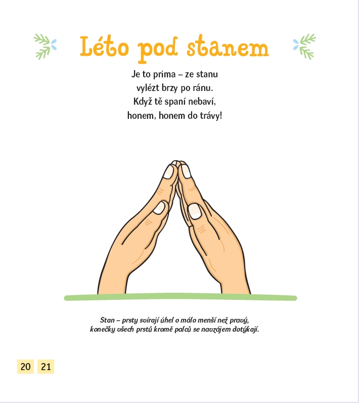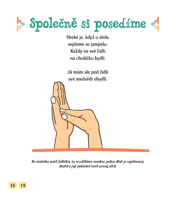Publikace je určená pro děti od čtyř let, respektive zejména pro jejich rodiče, a zaměřuje se na rozvíjení jemné motoriky. Jedná se o procvičování různých pohybů rukama a především prsty, například napodobování zvířete na pevné podložce (na stole, na vlastní nebo cizí ruce). Cvičení doprovázejí krátké rýmované texty a rovněž obrázek, který si lze (podle věku, situace a nálady dítěte) s básničkou spojit a rozvíjet tak motiv básničky.