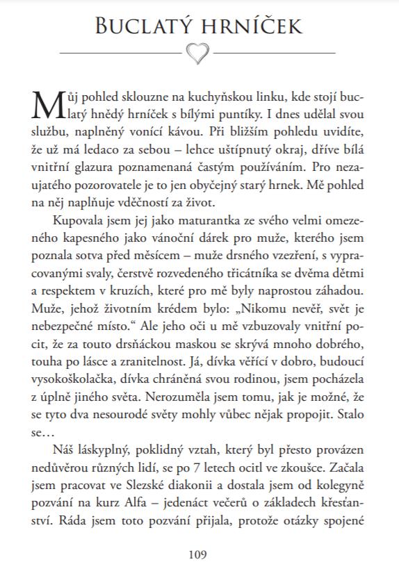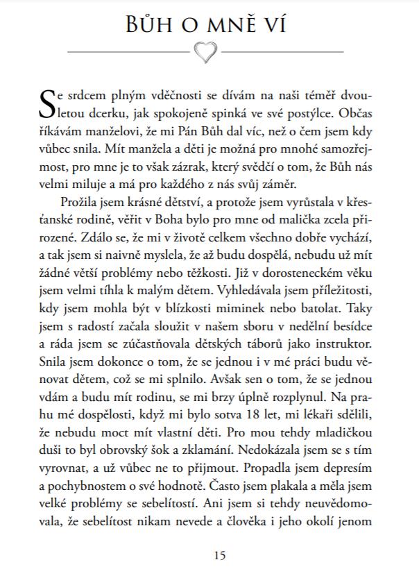 Více než 20 žen z našeho českého prostředí, které přispěly do knihy, vypráví nejen o vítězných a radostných okamžicích či obdobích, které prožily, ale i o těch nejtěžších. Dozvíte se třeba, jak se vypořádaly s krizí v manželství, depresí, rozvodem, neplodností, smrtí dítěte či partnera, nemocí, odmítnutím ze strany lidí, ztrátou nebo nedostatkem odvahy a víry.