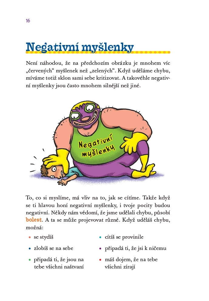 V knize najdeš různé vtipné úkoly, hádanky a testy, které ti pomohou zjistit, jak moc se bojíš chyb a co můžeš udělat pro to, aby to bylo jinak. Také zjistíš, že když chybuješ schválně, třeba lžeš, vymýšlíš si, nebo dokonce někoho urážíš, rozhodně to není v pořádku a nijak si tím nepomůžeš.