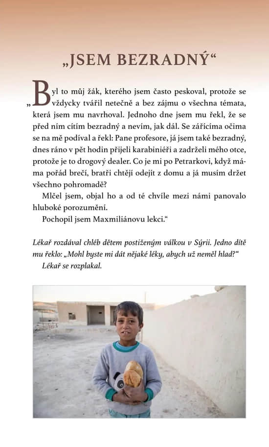 Představovat Bruna Ferrera (*1946) a jeho příběhy pro duši těm, kteří se s ním již setkali, je asi zbytečné. Ale co ti, kteří dílo tohoto italského kněze a salesiána ještě neznají? Bruno Ferrero dlouhé roky sbírá a knižně vydává příběhy pro duši a na světě nejspíš nebude duše, kterou by tyto příběhy plné moudrosti, křesťanské lásky, zbožnosti a naděje nepotěšily, neutěšily, nepobavily a nedojaly. Jen málokoho nechají chladným. Jedině příznivci dlouhých románových textů budou cítit jisté zklamání, protože tyto anekdoty s jasnými, prostými a povzbudivými morálními pointami jsou velmi krátké, neboť Bruno Ferrero je mistrem narativní zkratky. Jejich nevelký rozsah ale autor kompenzuje jejich množstvím: jen v Portále vyšlo již na dvacet knížeček příběhů pro duši, které dohromady vydají co do počtu stran na víc než tlustý román, avšak co do intenzity morálního poučení, povzbuzení, dojetí či radosti, které vzbudí, co do množství úsměvů, které vyvolají, co do hloubky zamyšlení a meditace, do které čtenáře zavedou, jen stěží najdou srovnání. Dokáží dát radu, podpořit dobré rozhodnutí, umožňují svým čtenářům znovu objevit smysl pro zázrak, údiv a lásku k druhým, bolest, krásu a mnoho dalších aspektů každodenního života. A právě v různých okamžicích každodenního života, večer před spaním, ráno před zahájením každodenního režimu, v rámci katechismu, v oratoři, s dětmi, ve chvílích smutku i radosti si můžeme úchvatné a hluboké Ferrerovy příběhy vychutnat třeba jako „myšlenku dne“.