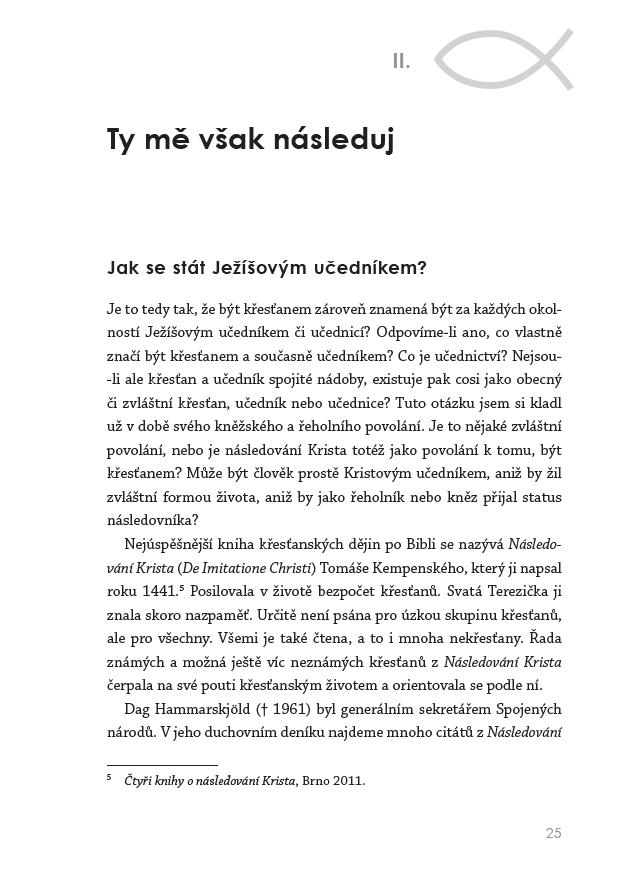 Kniha vídeňského kardinála je pozvánkou k prohloubení křesťanské víry. Co to znamená být Kristovým učedníkem? Je učedník něco víc než „běžný“ věřící? Jsou evangelijní nároky závazné pro všechny, nebo jen pro úzkou skupinu vyvolených? Schönborn ukazuje, že klíčové je vstoupit do vztahu s Ježíšem a do jeho pomyslné školy, která prostupuje celým životem. Takové následování Krista nevede k pocitu výlučnosti, ale k hlubšímu prožívání toho, co on sám nabízí a k čemu nás zve. Moudrá, laskavá a přitom pronikavá kniha povzbudí všechny, kteří chtějí vzít svou víru vážně a chtějí ji opřít o skutečnou skálu evangelia.