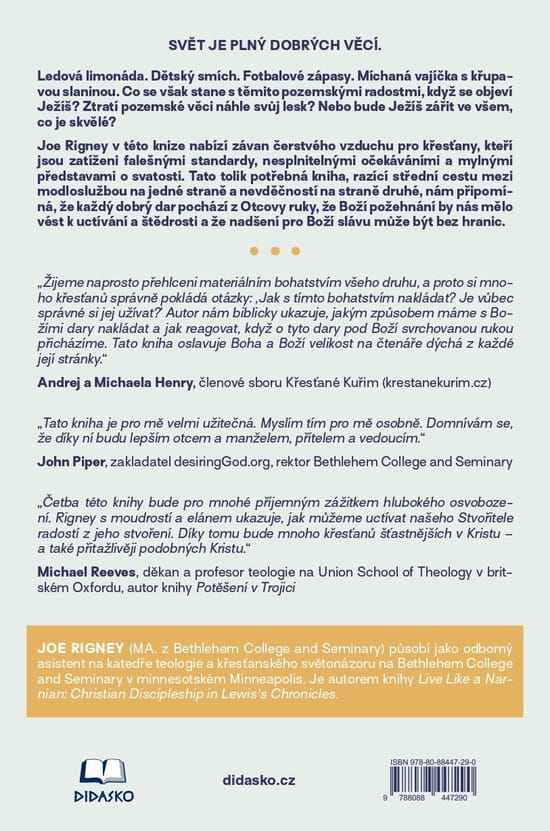 „Četba této knihy bude pro mnohé příjemným zážitkem hlubokého osvobození. Rigney s moudrostí a elánem ukazuje, jak můžeme uctívat našeho Stvořitele radostí z jeho stvoření. Díky tomu bude mnoho křesťanů šťastnějších v Kristu – a také přitažlivěji podobných Kristu.“
