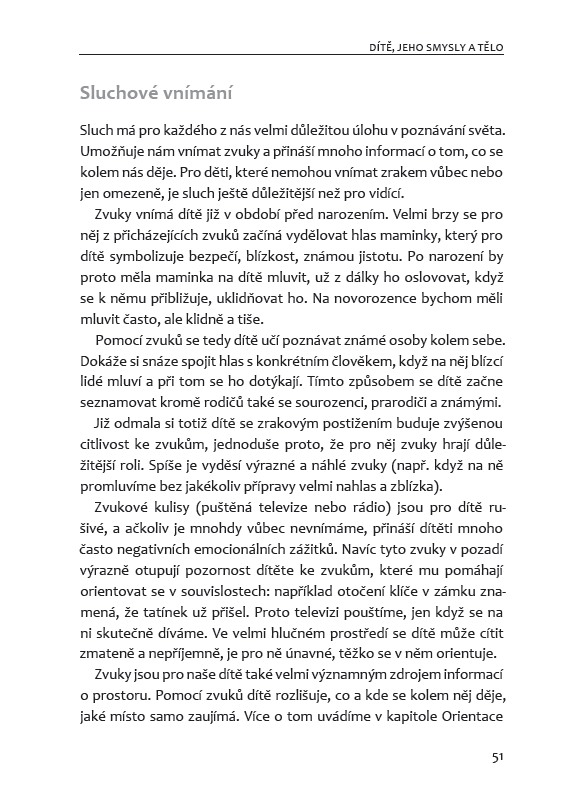 Kniha nabízí náměty pro rozvíjení základních dovedností od raného po školní věk dítěte. Text je proložen výpověďmi dětí a jejich rodičů a je v něm dostatek teorie pro pochopení problému, a přitom i opravdu praktické příklady, „jak na to“. Autorky doporučují i různé pomůcky a zaměřují se na ty, které lze jednoduše sehnat nebo je možné si je vyrobit z běžného materiálu a předmětů.