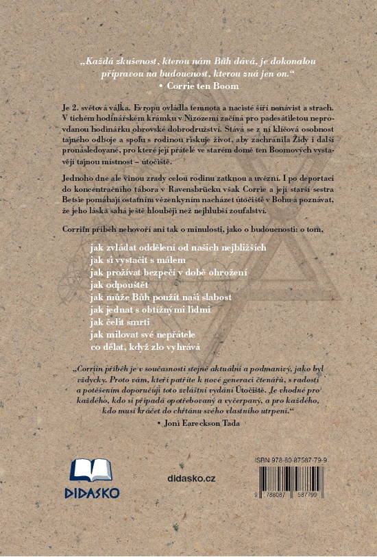 Jednoho dne ale vinou zrady celou rodinu zatknou a uvězní. I po deportaci do koncentračního tábora v Ravensbrücku však Corrie a její starší sestra Betsie pomáhají ostatním vězenkyním nacházet útočiště v Bohu a poznávat, že jeho láska sahá ještě hlouběji než nejhlubší zoufalství. Corriin příběh nehovoří ani tak o minulosti, jako o budoucnosti: o tom,