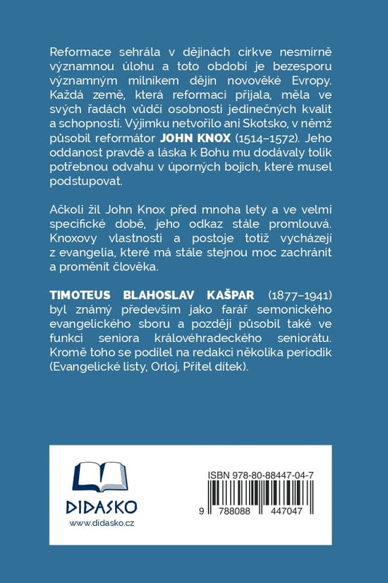 Reformace sehrála v dějinách církve nesmírně významnou úlohu a toto období je bezesporu významným milníkem dějin novověké Evropy. Každá země, která reformaci přijala, měla ve svých řadách vůdčí osobnosti jedinečných kvalit a schopností. Výjimku netvořilo ani Skotsko, v němž působil reformátor John Knox (1514–1572). Jeho oddanost pravdě a láska k Bohu mu dodávaly tolik potřebnou odvahu v úporných bojích, které musel podstupovat.