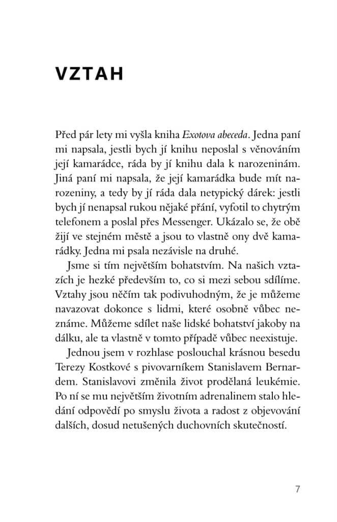 Nový soubor duchovních zamyšlení a krátkých příběhů Ladislava Heryána dává opět jiným způsobem nahlédnout do jeho vnímání Boha, spirituality a křesťanství. Psané Heryánovým osobitým způsobem, zalidněné svéráznými postavami z jeho okolí, plné soucitu, vhledu do potřeb současného člověka a naděje v to, že nad vším stojí Láska. Úvahy jsou doplněny biblickými úryvky a dalšími texty z autorova zápisníku, takže kniha vytváří svébytný „Exotův breviář“, který se hodí k duchovní četbě, rozjímání, jako posila i zdroj inspirace.
