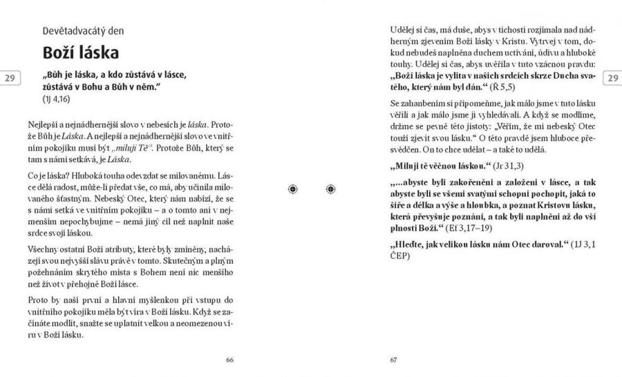 Kéž Boží slovo vytvoří kolem tebe i v tobě svatou atmosféru, Boží nebeské světlo, které občerství tvou duši a posílí ji pro úkoly všedního života. Ano, udělej si čas, aby Boží svatá přítomnost mohla vstoupit do tvého srdce. Po nějakém čase bude celá tvá bytost prostoupena Božím životem a Boží láskou.“