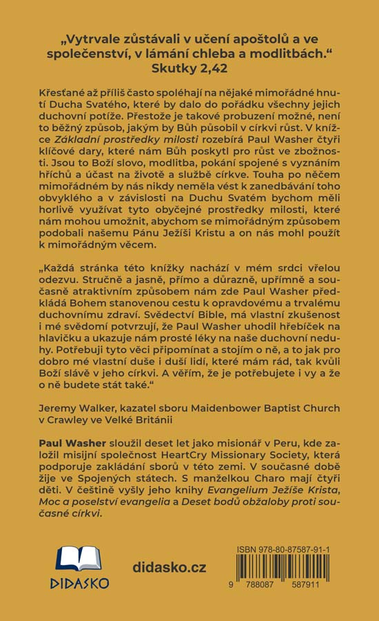 Křesťané až příliš často spoléhají na nějaké mimořádné hnutí Ducha Svatého, které by dalo do pořádku všechny jejich duchovní potíže. Přestože je takové probuzení možné, není to běžný způsob, jakým by Bůh působil v církvi růst. V knížce Základní prostředky milosti rozebírá Paul Washer čtyři klíčové dary, které nám Bůh poskytl pro růst ve zbožnosti. Jsou to Boží slovo, modlitba, pokání spojené s vyznáním hříchů a účast na životě a službě církve. Touha po něčem mimořádném by nás nikdy neměla vést k zanedbávání toho obvyklého a v závislosti na Duchu Svatém bychom měli horlivě využívat tyto obyčejné prostředky milosti, které nám mohou umožnit, abychom se mimořádným způsobem podobali našemu Pánu Ježíši Kristu a on nás mohl použít k mimořádným věcem.