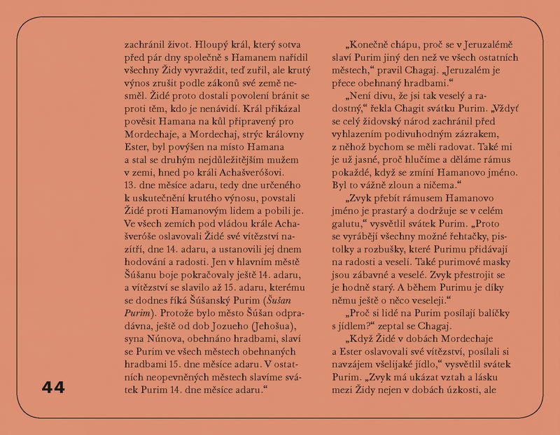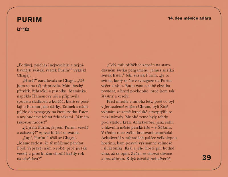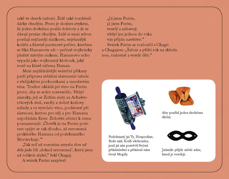 Kniha svátků (Sefer hachagim) provede čtenáře, děti a spolu s nimi jejich rodiče či pedagogy tradicemi a významem jednotlivých židovských svátků. Ilustrace tvoří nedílnou součást knihy a poměrně podrobný text doplňují, odlehčují, a přitom nezlehčují. Každá z kapitol popisuje návštěvu jednoho židovského svátku, který (personifikovaný) přichází navštívit kamarády Chagaje a Chagit. Děti se s jednotlivými svátky seznamují a vyptávají se jich na rozličné podrobnosti a zajímavosti. Po pojednání o svátcích Roš Hašana, Jom Kipur, Sukot, Simchat Tora, Chanuka, Tubišvat, Purim, Pesach, Lag baomer a Šavuot knihu uzavírá kapitola věnovaná Šabatu.