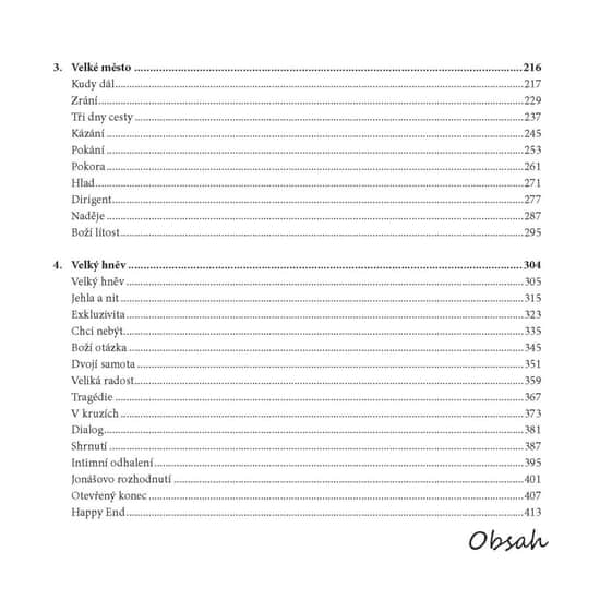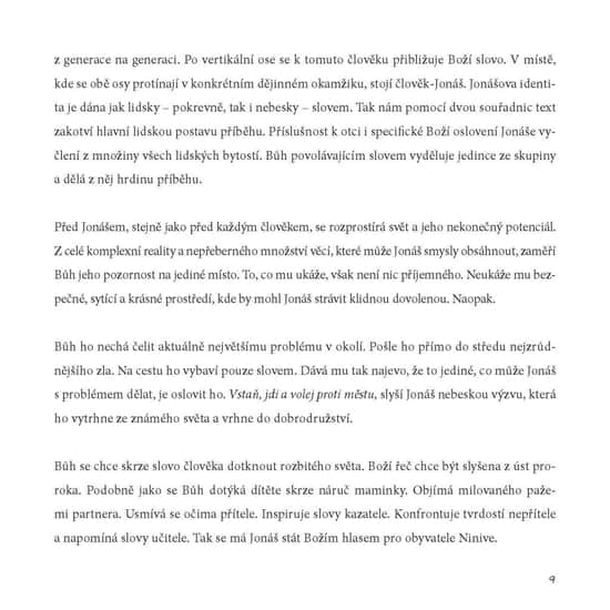Autor vás pomalým tempem provází příběhem o Jonášovi. U každé věty starověkého textu se na chvíli zastaví, rozjímá nad jejím významem, zasazuje ji do širších teologických a psychologických souvislostí a sdílí, co se v něm při četbě odehrává. Z postupné interakce mezi textem a čtenářem se vynořují témata, která se dotýkají lidské zkušenosti: proměna, zralost, zodpovědnost, pasivita, samota, smysl života, krize, komunikace a emoce. Hlavní hrdina postupně odhaluje své mylné představy o Bohu. V kontaktu s živým Bohem se mu jeho obraz rozpadá a znovu skládá v reálnější podobě. Kniha nabízí rozmanitou mozaiku příběhů, obrazů, příměrů, poznatků, otázek, modliteb i praktických výzev. Nastavuje zrcadlo a zve čtenáře k hlubšímu uvědomění vlastního prožívání a chování. Právě takové uvědomění otevírá cestu k plnějšímu kontaktu s Bohem a proměně ve zralejšího člověka.