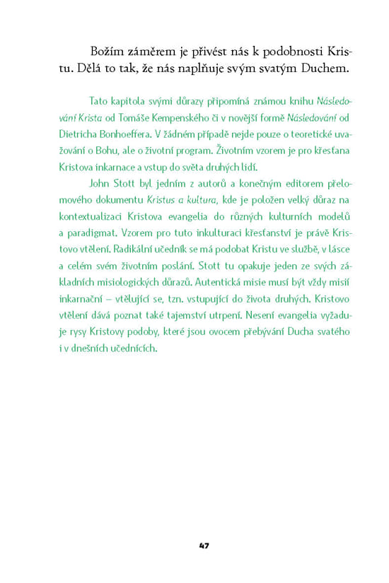 Ve své poslední kize Radikální učedník není John Stott mnohomluvný ani vyhýbavý, jeho poselství je jasné a současné. Výzva ke kristovské radikalitě je především výzvou k blízkosti: lidské bídě i strádající Zemi. Ukazuje novodobé učednictví jako ochotu ke skromnosti, sociální a environmentální odpovědnosti, to vše s důvěrou v milujícího Boha.