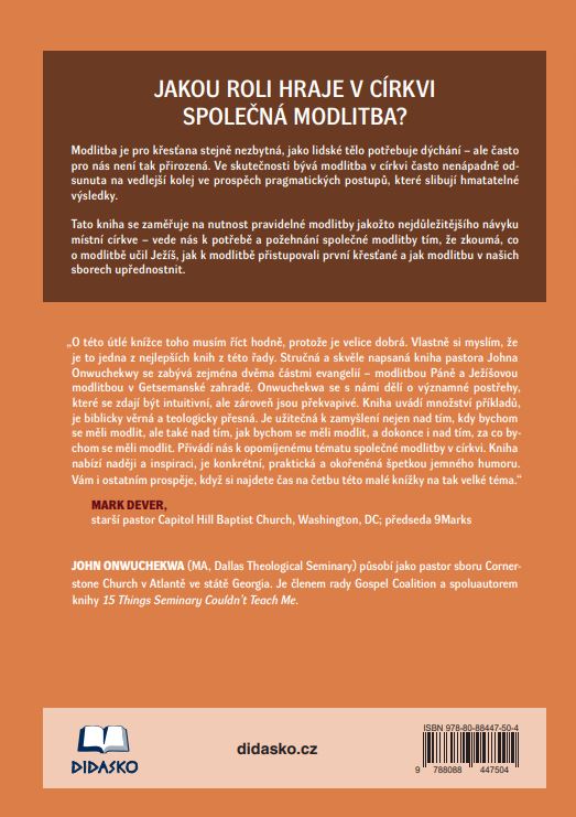 Tato kniha se zaměřuje na nutnost pravidelné modlitby jakožto nejdůležitějšího návyku místní církve – vede nás k potřebě a požehnání společné modlitby tím, že zkoumá, co o modlitbě učil Ježíš, jak k modlitbě přistupovali první křesťané a jak modlitbu v našich sborech upřednostnit.
