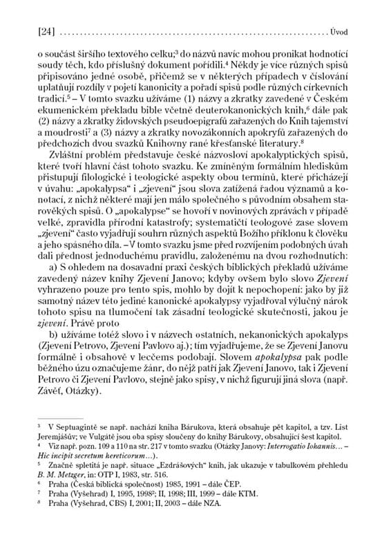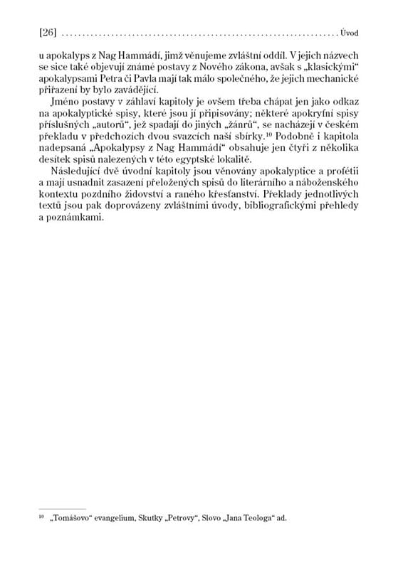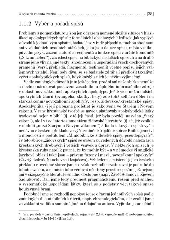Zatímco v bibli je apokalyptický žánr zastoupen jen okrajově (knihou Daniel a Zjevením sv. Jana), apokryfních spisů, jež do biblického kánonu nebyly přijaty, je celá řada. Tyto apokalypsy neboli „zjevení“ se pohybují na rozhraní židovské a křesťanské literatury a zrcadlí dobu neklidu a pronásledování, jež v prvních staletích po Kristu zažívala raná církev. Proto se v nich objevuje naděje, že pronásledování věřících je znamením blížícího se vysvobození a nastolení Kristova království. Druhým hlavním tématem je stará lidská otázka, jaký osud po smrti čeká lidi dobré a zlé. Apokalypsy na ni odpovídají popisem nebeských sfér a blaženosti spravedlivých v ráji, a ještě obšírněji barvitým líčením pekla. Petr, Pavel, Maria či Ezdráš v doprovodu andělů putují po místech, kde jsou hříšníci krutě trestáni, prosí Boha o smilování a někdy pro ně dokonce vyprosí nedělní úlevu v jejich útrapách. Český překlad dvaceti apokryfních spisů z řečtiny, latiny a koptštiny, připravený v Centru biblických studií v Praze, je doprovázen zasvěcenými úvody a komentáři.