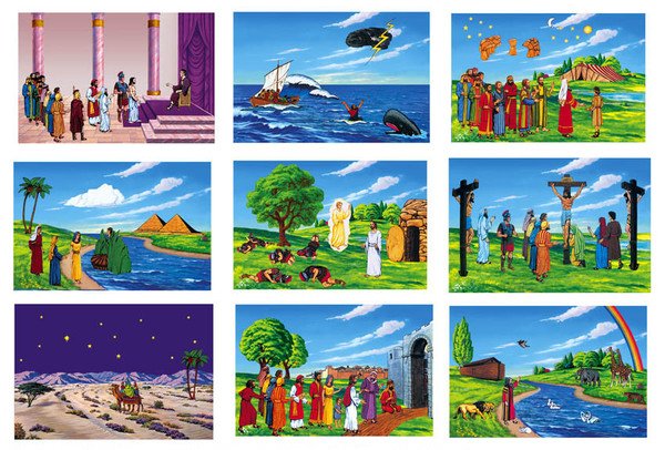 Obsahuje: 600 dílů (postavy, zvířata, rostliny, různé předměty), 3 další pozadí a doplňky k pozadí, skladovací systém (2 krabice), manuál se 182 lekcemi (anglicky), český pomocný překlad názvů a biblických oddílů.