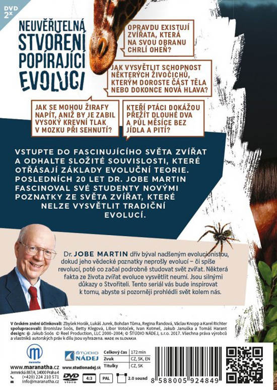 Tři díly Neuvěřitelná stvoření popírající evoluci vychází na dvou DVD. V prvním dílu se můžete seznámit se zvláštnostmi zmíněných prskavců, dále žiraf, datlů nebo ptakopysků. V dalších dvou dílech se Dr. Martin věnuje mimo jiné i stavbě lidského oka a ušního bubínku. Dr. Martin napsal o své změně v chápání světa knihu nazvanou „Evoluce kreacionisty“, která dosud nebyla přeložena do češtiny.